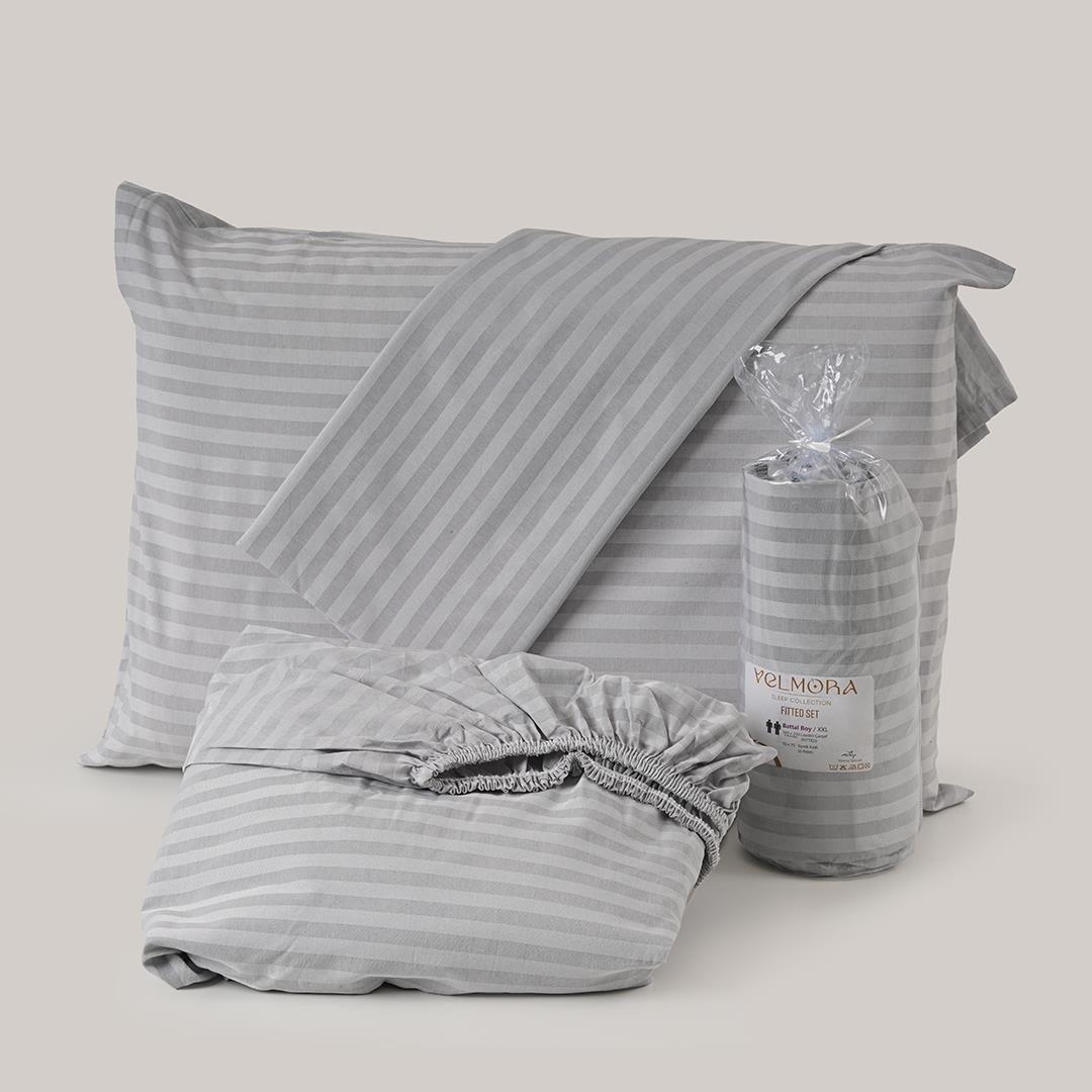 Gri Renk Pamuklu Saten Fitted Tek Kişilik Çarşaf Takımı (120x200cm)